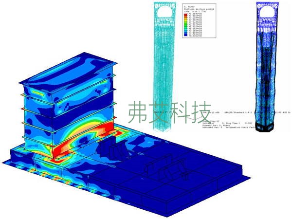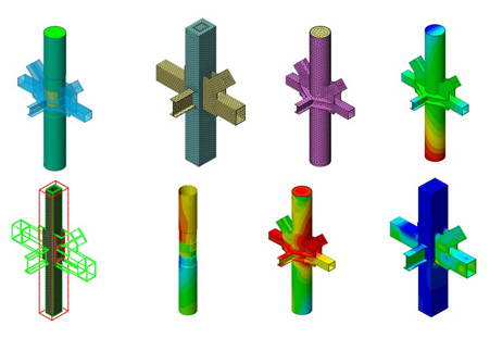 汽车及交通运输, 电子和半导体, 能源及公共事业 建筑行业 Architecture 2023年1月31日 / No Comments 分析软件可以进行多种功能分析,其解决问题的范围从简单的线性分析到复杂的非线性分析都可胜任,软件包含丰富的单 元库,可以模拟任意几何形状的单元库和材料性能,结构分析是其重要组成部分,这就决定FEA的操作界面不同于结构 设计软件。结构设计软件的功能目标很明确,就是为了给结构工程师提供施工图终端服务的,各种界面设置都是围绕工程师 关心的事情出现的,再配合“傻瓜式”的服务理念,大部分的功能都集成化,也符合结构工程师的思维模式,因此结构设计软 件的应用非常直接而广泛。不同的结构设计软件可能在界面上有差异,但菜单设计是按照结构工程师的设计思路排序的,有 经验的工程师可以不经过训练就可以通过软件操作进行施工图没计。 山顶观光塔的强度分析 造型独特带来强烈的视觉冲击力,在结构的设计中,进行最大载重的静态分析,评估可行性。 连接强度分析 钢管混凝土柱与钢梁连接点处的应力分析,该处结构形式复杂,应力状况也比较复杂,需要研究钢材和混凝土之间的协同作用。