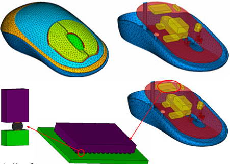 工业机械及重型装备, 汽车及交通运输, 生物医疗和制药, 电子和半导体, 能源及公共事业, 航空航天及国防 电子电器 Electronic 2023年1月31日 / No Comments 电子电器行业进入21世纪之后,消费者对于电子电器的需求越来越高,除了必备的耐用性,可靠性, 更多的要求被需要:更节能,更高效,外形时尚,功能个性化…这些更贴心,更满足消费者需求的产品 都需要靠不断增加产品的技术含量来实现,CAE方法能有效缩短电子企业的研发周期,减少产品的开发 成本,提升产品的附加值。弗艾科技为您提供集成CAE解决方案,包括建立模型、计算分析、后处理分 析和优化整套过程。 热分析 本项目为模块级热仿真分析,模拟在一定的环境及工况下,电源连接器的温度分布,每个触点为12A, 在接通电源后,每个触头的温度上升状况,并就此分析结果为设计者提供合理的改进建议。 鼠标跌落分析 为了验证鼠标强度,鼠标各部件的牢固程度是否能满足要求,本案例中,用abaqus进行边界及载荷的定义 在参考电子产品的跌落高度标准要求,用Absqus进行试算,检验产品是否符合要求。