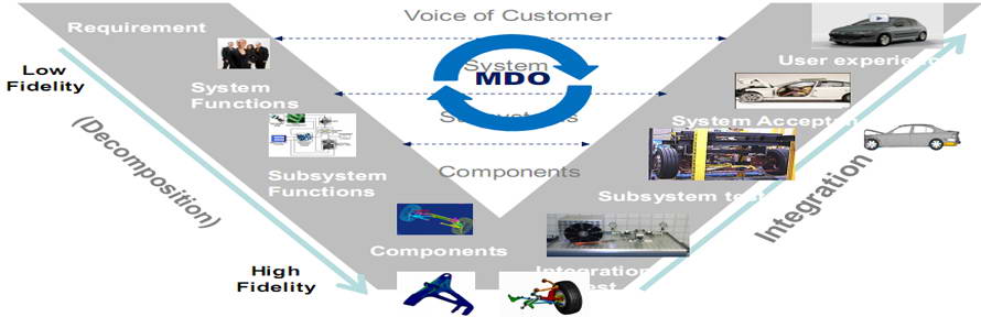 多学科设计优化是一种充分探索子系统相互作用的复杂系统设计方法论,多学科设计优化最早是由美国国家航空航天 局(National Aeronautics and Space Administration ,NASA)高级研究院、现任美国航空航天学会(American Institute of Aeronautics and Astronautics,AIAA)多学科设计优化技术委员会主席Sobieszczanki-Sobieski提出,是一种探索子系 统相互作用的复杂系统设计方法论。通过探索和利用系统中相互作用的协同机制,利用多目标策略和计算机辅助技术来 设计复杂系统及子系统,可以有效缩短设计周期,获取系统整体最优性能。
